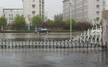 伸縮門由不同結構組成,容易被大風刮倒,造成損失